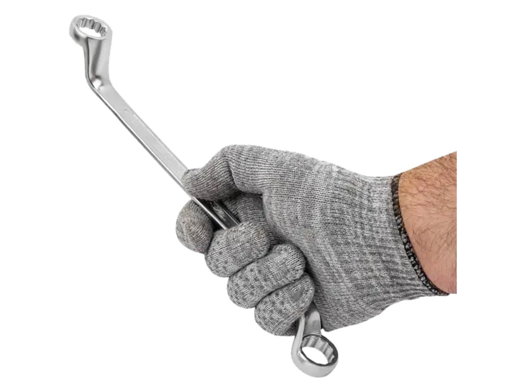 Двата края на ключа, огънати под ъгъл от 75°, позволяват удобна работа на труднодостъпни места – например при двигатели, шасита или инсталации.