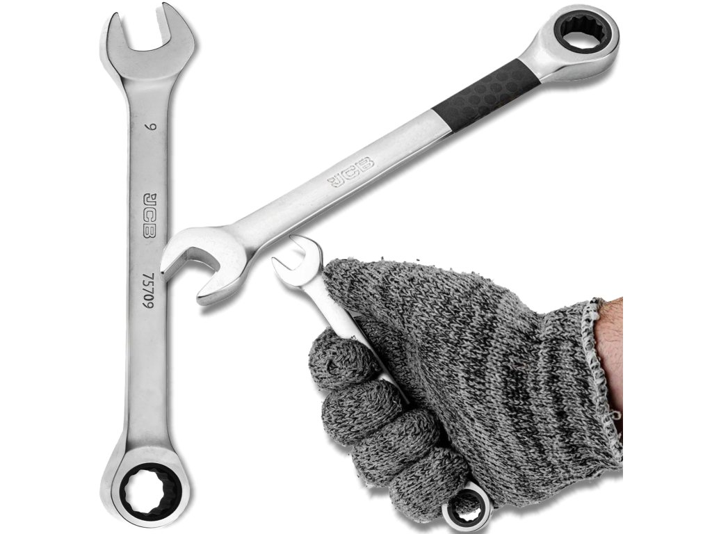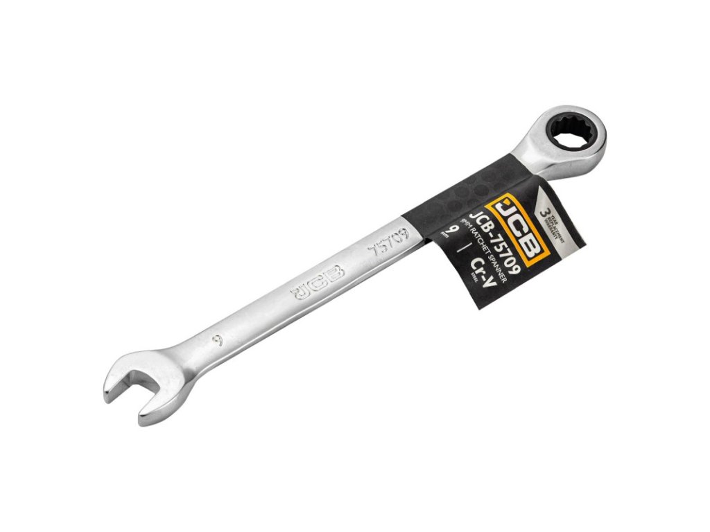 JCB комбиниран ключ 9 мм с двупосочен тресчот, Cr-V, 12-стенен