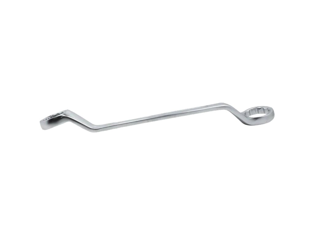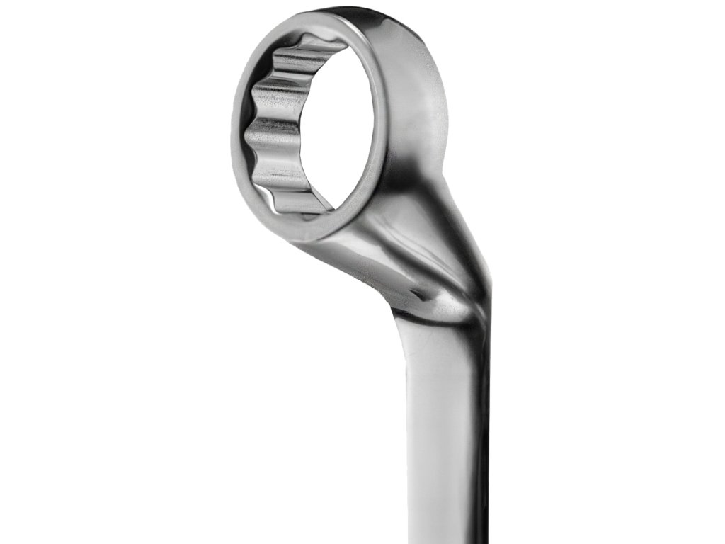 Конструкцията с изместени пръстени подобрява достъпа и увеличава лостовия ефект, което е ключово при разхлабване или затягане на силно натоварени болтове. Благодарение на изработката от хром-ванадиева стомана (CrV) и студеното коване, инструментът е изключително издръжлив, устойчив на деформации и износване.