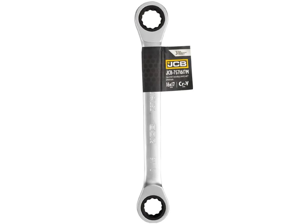 JCB Двустранен звездогаечен ключ с тресчотка, 16 x 17 мм, Cr-V, 12-стенен