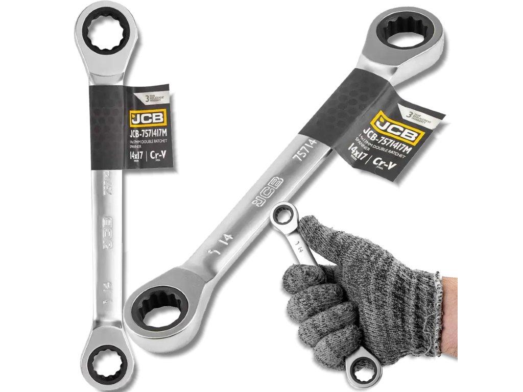 JCB Očkový klíč oboustranný s ráčnou 14 x 17 mm, Cr-V, 12hranný