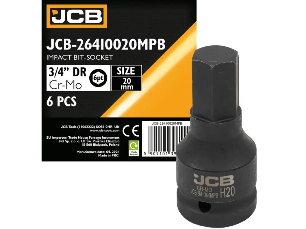 JCB Rázová bitová hlavice 3/4" 20 mm, 6hranná, Cr-Mo