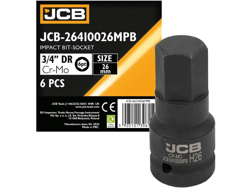 JCB Rázová bitová hlavice 3/4", 26 mm, 6hranná, Cr-Mo