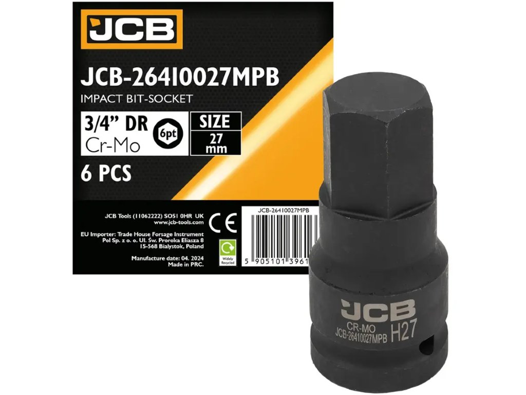 JCB Rázová hlavice 3/4" 27 mm, 6hranná, Cr-Mo
