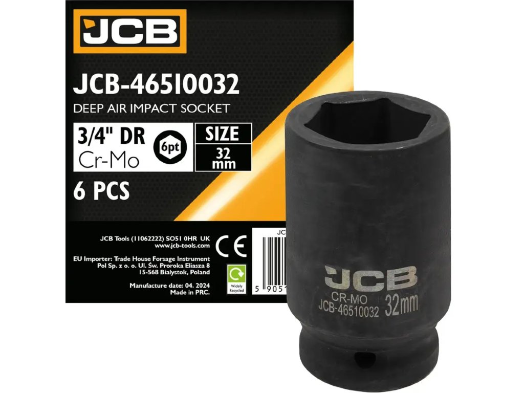 JCB Rázová hlavice 3/4", 32 mm, hluboká, 6hranná, Cr-Mo