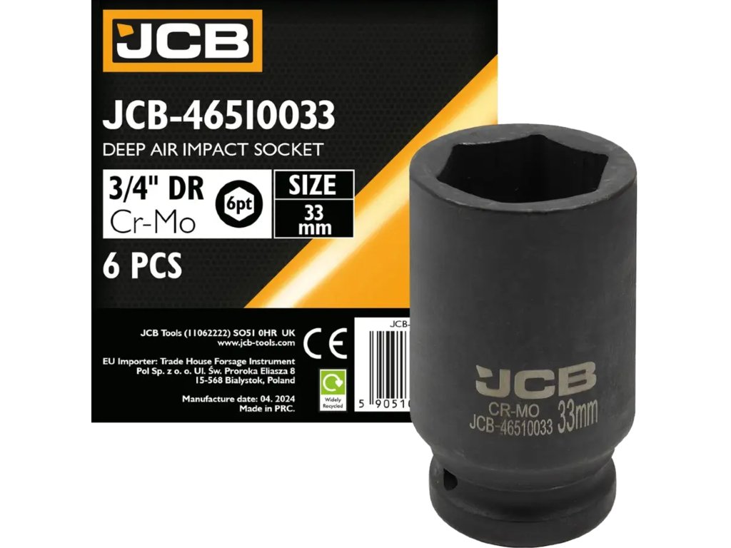 JCB Rázová hlavice hluboká 3/4" 33 mm, 6hranná, Cr-Mo