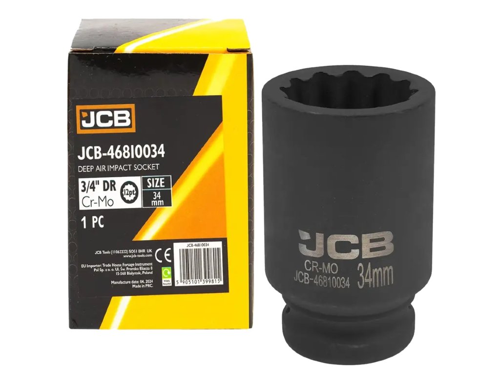 JCB Rázová hlavice hluboká 3/4" (34 mm), 12hranná, Cr-Mo