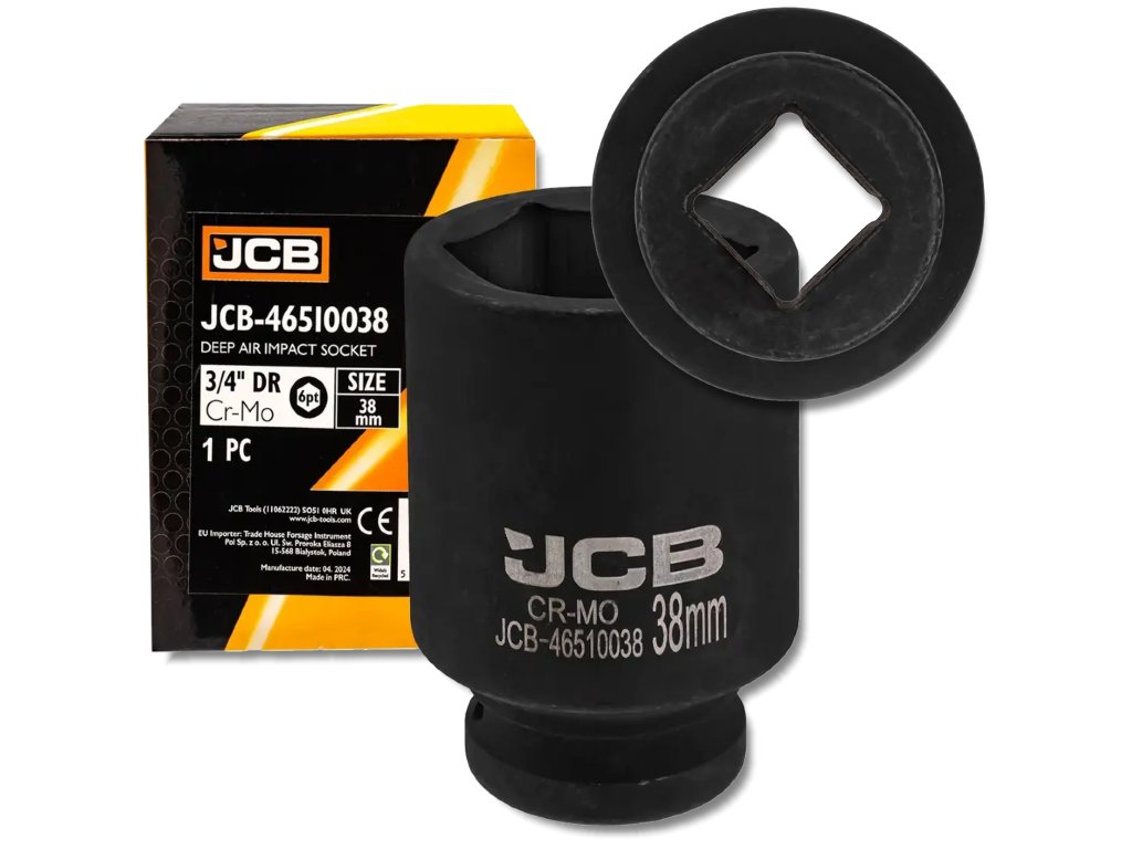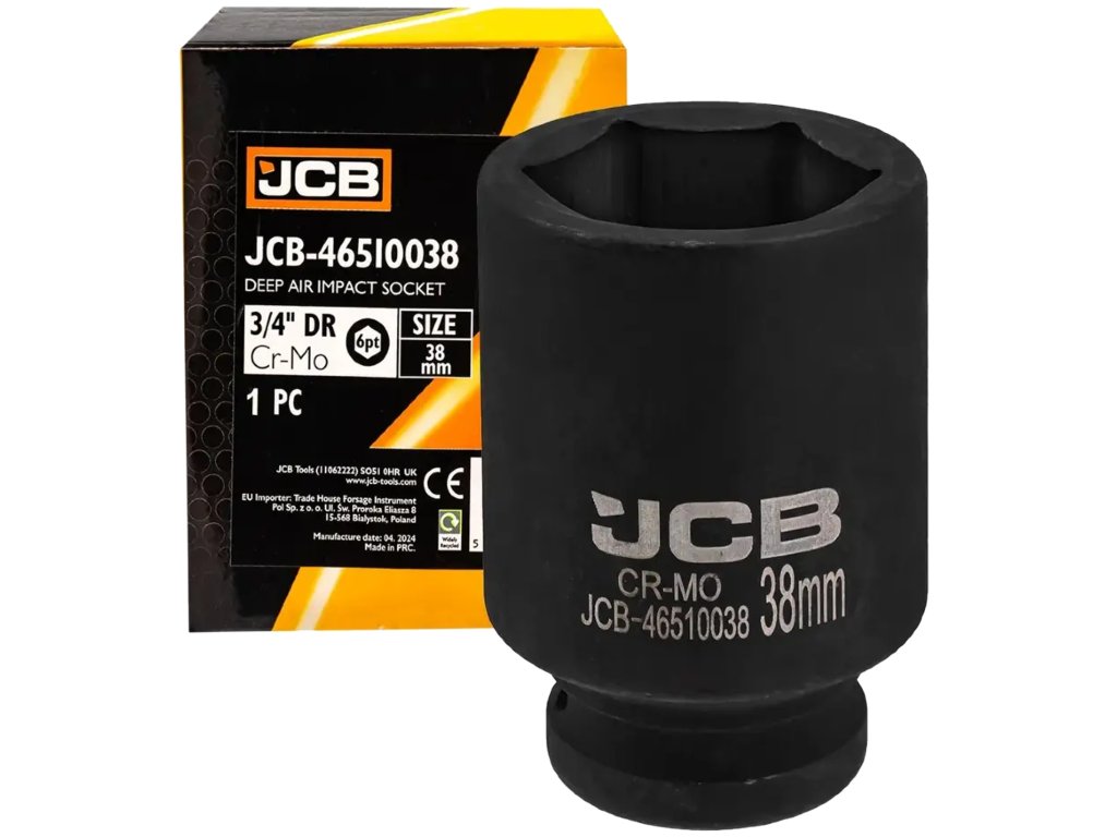 JCB Rázová hlavice hluboká 3/4", 38 mm, 6hranná, Cr-Mo