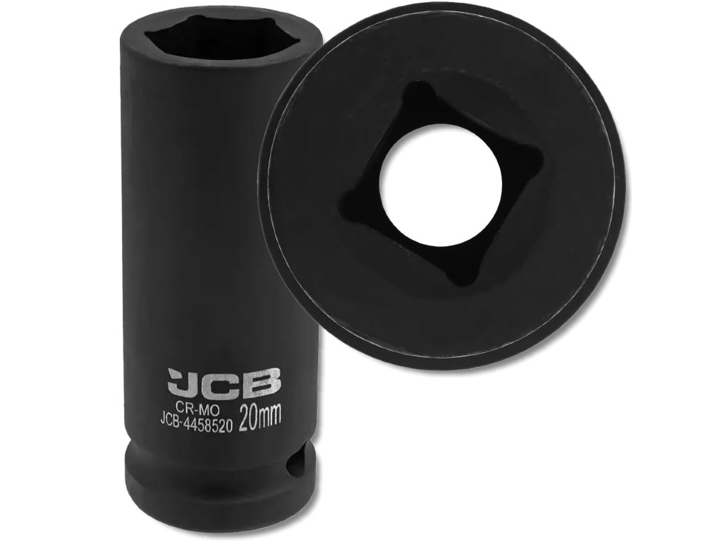 JCB Rázová hluboká hlavice 1/2", 20 mm, 6hranná, Cr-Mo
