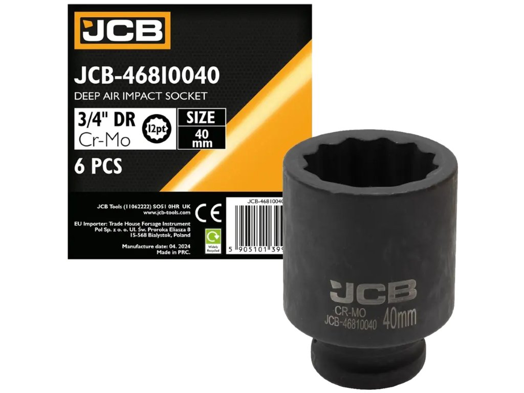 JCB Rázová hluboká hlavice 3/4" 40 mm, 12hranná, Cr-Mo