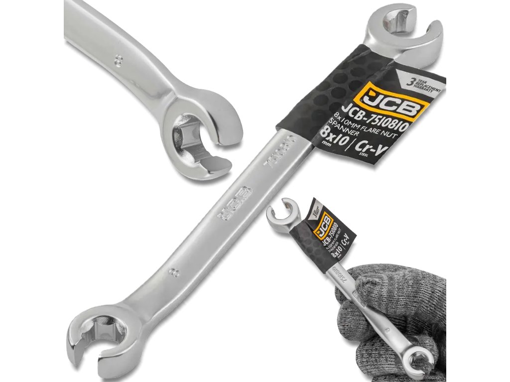 JCB отворен звездообразен ключ 8 x 10 мм, двустранен, Cr-V, 6-стенен