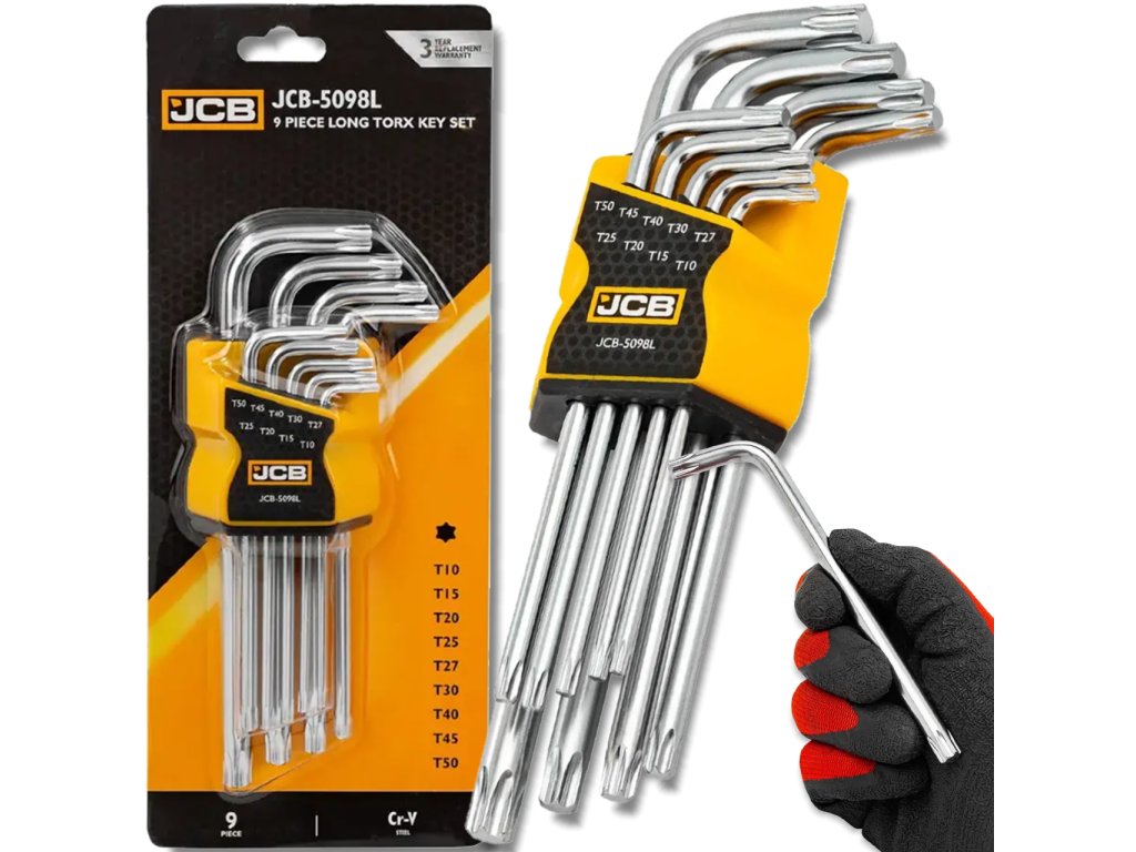 JCB комплект дълги TORX L-ключове, 9 бр., T10–T50, Cr-V