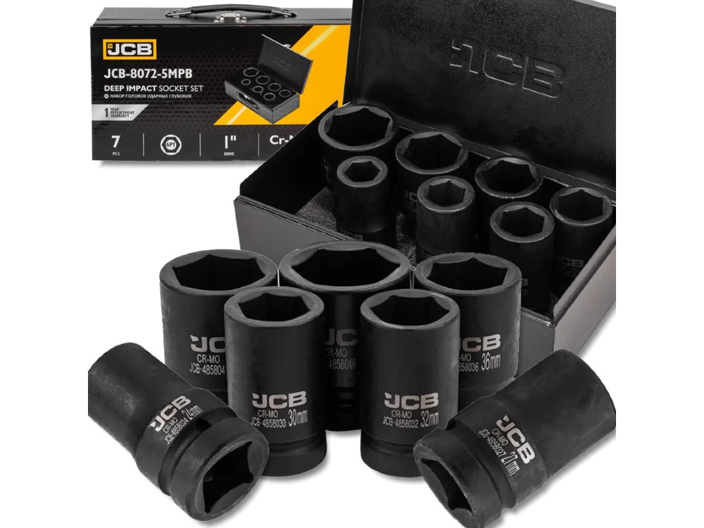 JCB Комплект дълбоки ударни вложки 1" 6-стенни, Cr-Mo, 7 бр. (24–46 мм)