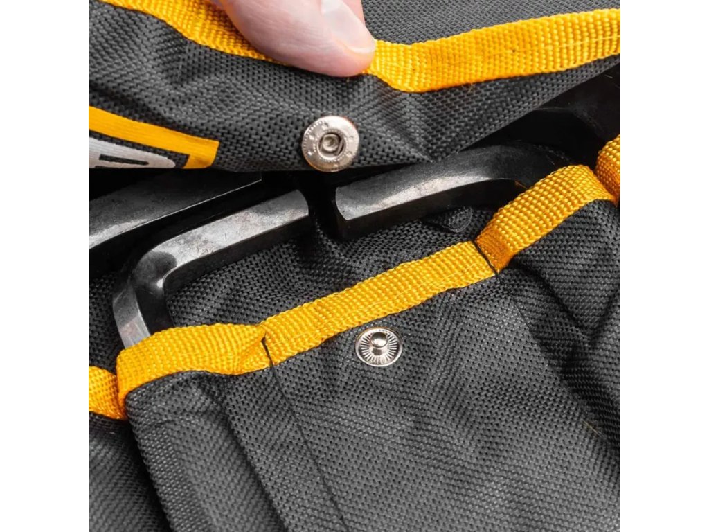 Комплектът е разположен в практичен монтажен панел, оборудван с отвори за окачване – благодарение на това е лесно да го закачите на стената, осигурявайки бърз достъп до инструментите и ред в работното пространство.