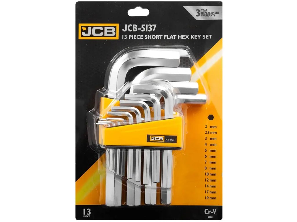 JCB комплект шестограми L, 13 бр., 2–19 мм, Cr-V