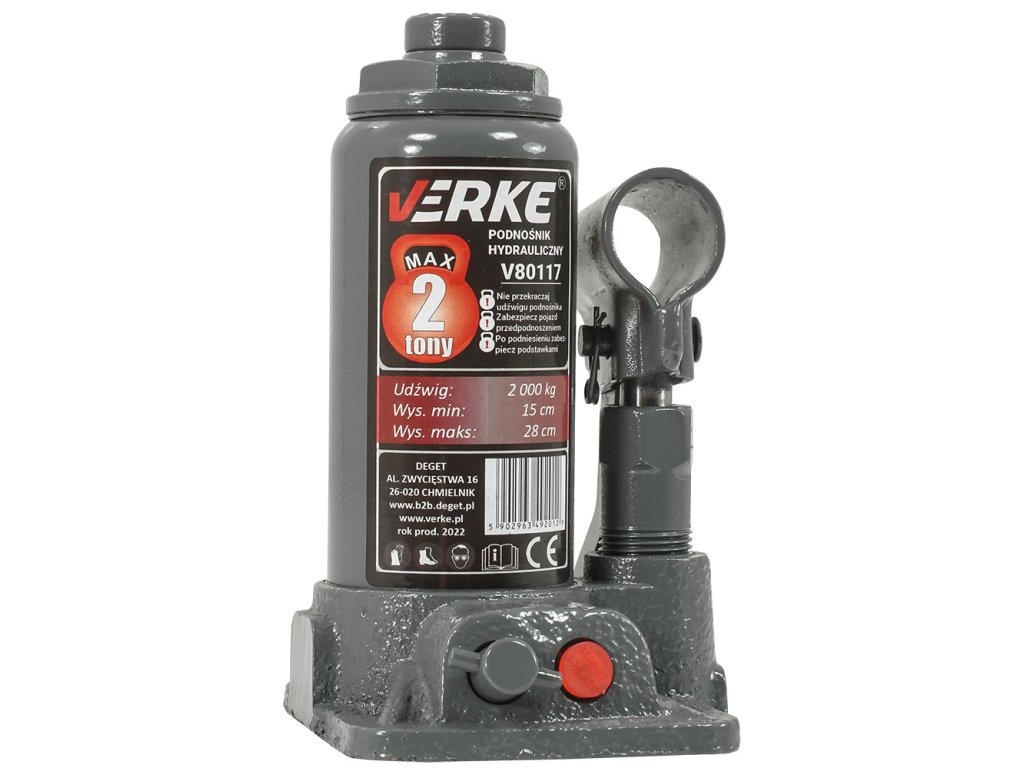 Хидравличен крик 2Т VERKE V80117 с максимална товароносимост 2 т. Здравата му конструкция осигурява издръжливост и безопасност, а компактните размери гарантират лесна употреба и надеждност за всеки механик. Освен това регулируемата основа на буталото на крика е оборудвана със здрава трапецовидна резба, устойчива на претоварване и гарантираща плавна работа. Крикът е незаменим в всяко работилно помещение и е отличен аксесоар за оборудване на гараж.