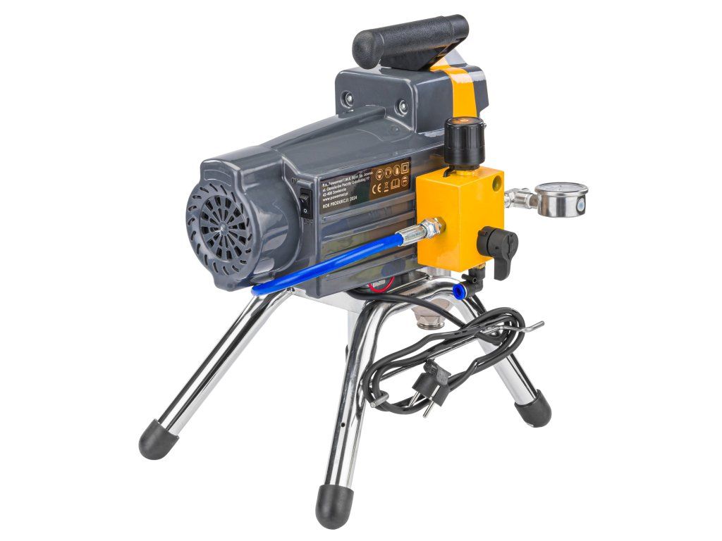 Здрава помпа с конструкция, устойчива на износване, гарантира минимални прекъсвания. Лесно сменяемите филтри намаляват разливането на боя, а бързата смяна на боята улеснява поддръжката. Този модел е по-лек и по-ефективен от повечето на пазара.