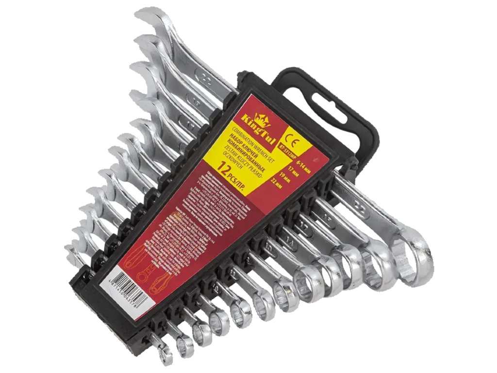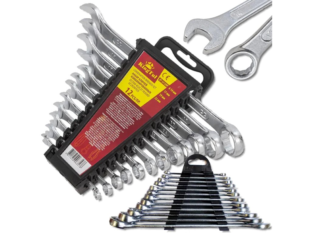 Комплект от 12 висококачествени комбинирани ключа KINGTUL са надеждни инструменти за монтаж и демонтаж на резбови съединения. Изработени от хром-ванадиева стомана (Cr-V) и в съответствие със стандартите DIN 3113 / ISO, те гарантират устойчивост, устойчивост на корозия и максимален комфорт при употреба.
