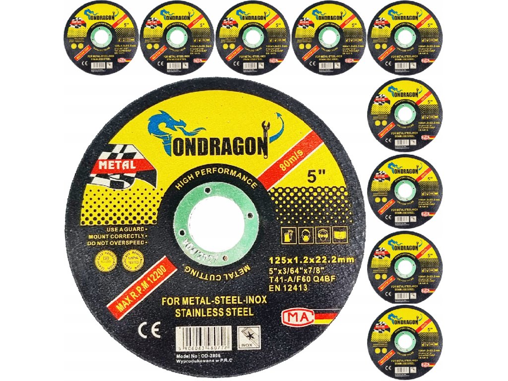 Този комплект от 10 бр. режещи дискове с размери 125 x 1,0 x 22,2 мм е идеален за рязане на метали, включително неръждаема стомана (INOX). Дисковете са изработени от висококачествен електрокорунд (A), който осигурява висока издръжливост и дълъг живот. С максимална скорост на въртене 12 200 об./мин и скорост 80 м/сек гарантират бързо и прецизно рязане на метални материали като ламарини, тръби или профили.