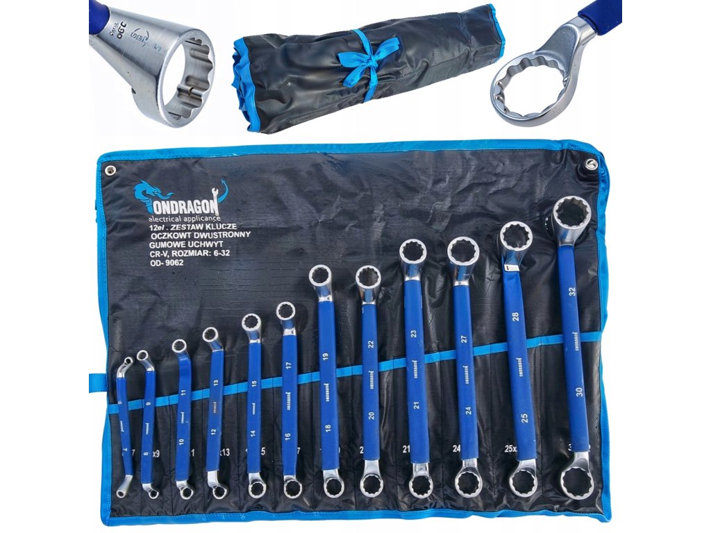 Комплект 12 двустранни звездогаечни ключове 6-32 мм с гумена дръжка и калъф