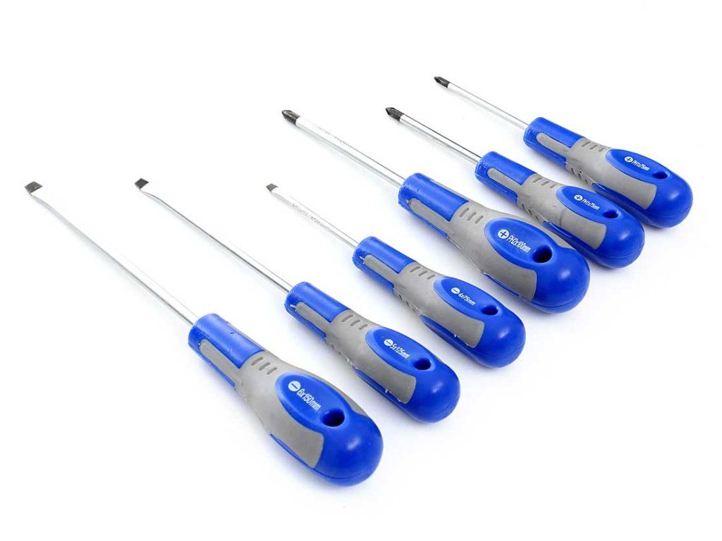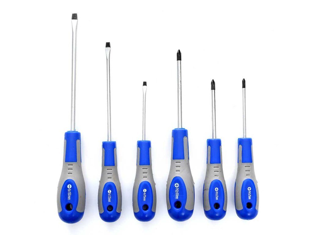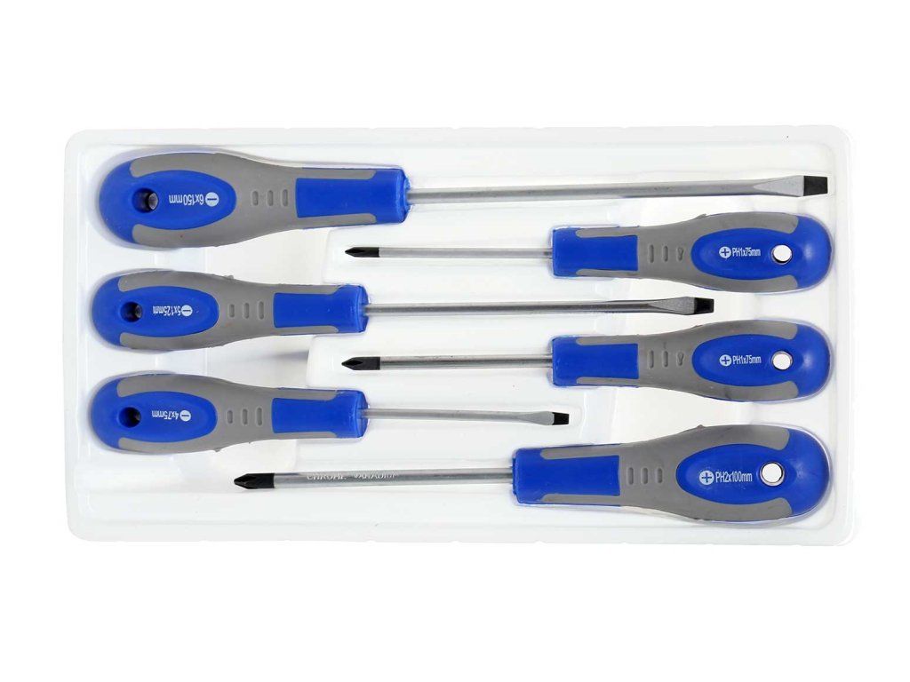 - Плоски отвертки: 4x75мм, 5x125мм, 6x150мм