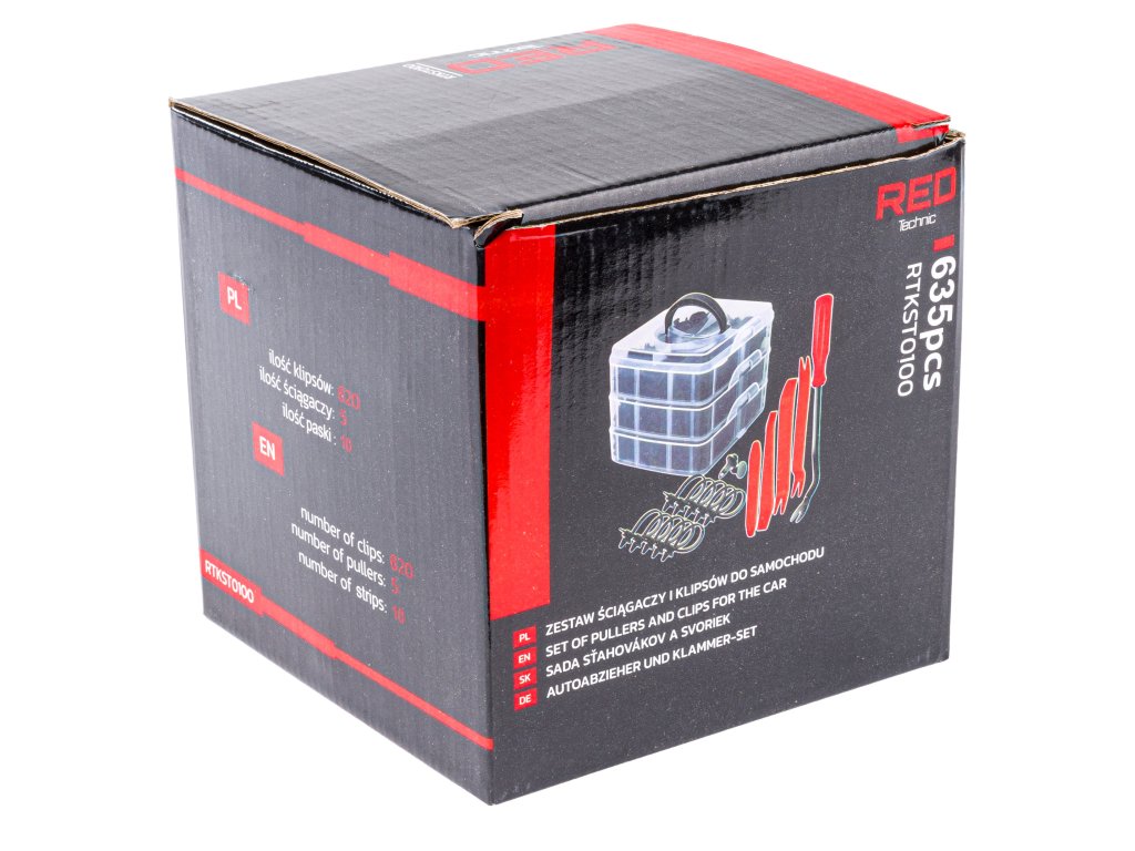Комплект автомобилни клипсове 635 бр RTKST0100 - УНИВЕРСАЛЕН НАБОР ОТ 620 ЩИПКИ, ЩИФТОВЕ, КЛИПСОВЕ, ЗАКЛЮЧВАНИЯ, 4 РЕЗАЧКИ И 10 ЛЕНТИ + ИЗВЛИЧАЧ - ОБЩО 635 ЧАСТИ