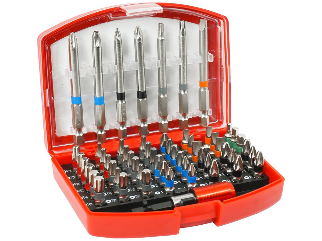 Комплект битове 56 бр. VERKE V39202 е набор от професионални аксесоари, състоящ се от 56 елемента. 48 битове с дължина 25 мм са изработени от хром-ванадиева стомана и 7 битове с дължина 70 мм. Магнитният бързозаменяем държач улеснява смяната на битовете. Всички елементи са подредени в практичен, здрав калъф за удобно съхранение и транспортиране.