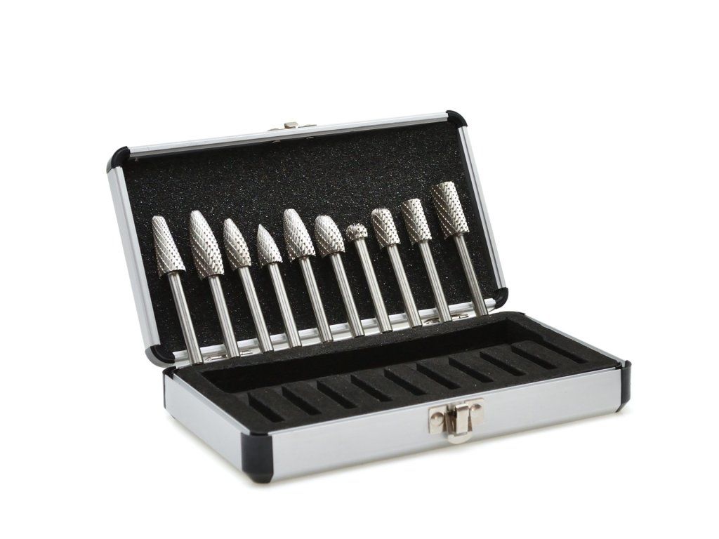 Висококачествен комплект боркорони изработени от бързорезна стомана HSS. През последните години боркороните станаха много популярни благодарение на широкото им приложение в автомобилната, авиационната, корабостроителната индустрия и други отрасли, където е необходимо бързо премахване на излишни заварки и изпъкналости, възникнали по време на леенето.