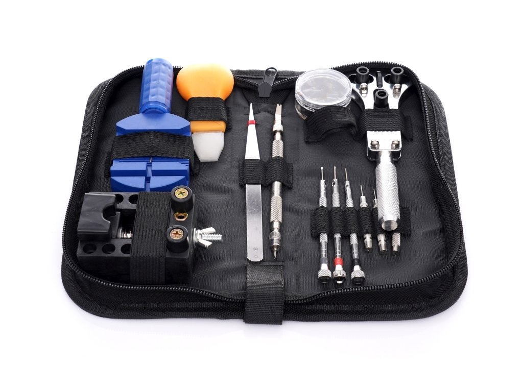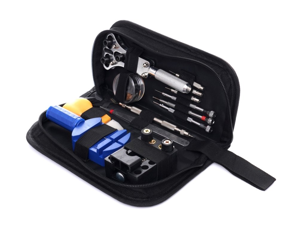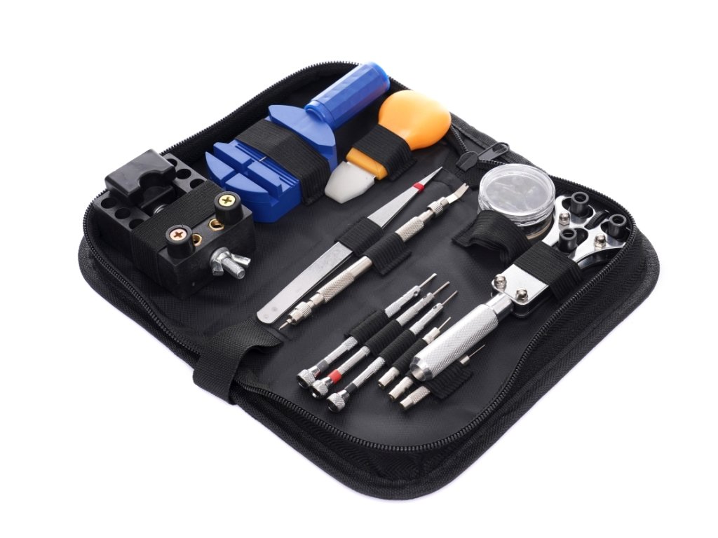 Комплект часовникарски инструменти за ремонт на часовници и електроника, държач, инструменти