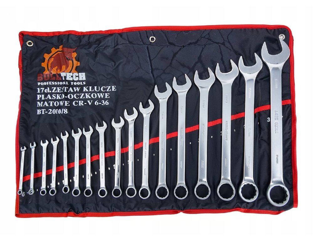 Комплектът плоски и звездогаечни ключове с размери от 6 мм до 36 мм е идеалният инструмент както за професионалисти, така и за домашни майстори. Ключовете са изработени от висококачествена хромо-ванадиева стомана, която гарантира тяхната дълготрайност, издръжливост и способност да работят дори при най-тежки условия.