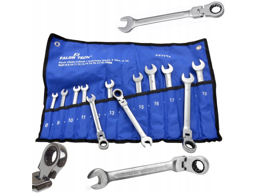 - 12 бр. комбинирани ключове с тресчотка (размери 8-19 мм)