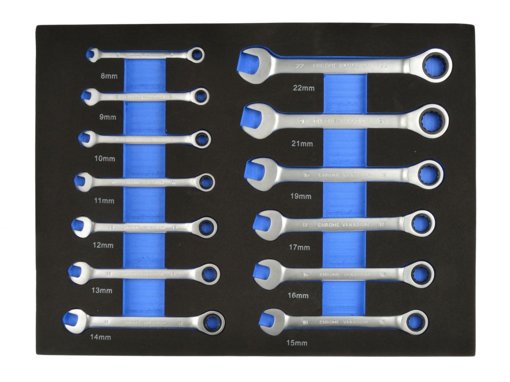 - Включва ключове с размери: 8, 9, 10, 11, 12, 13, 14, 15, 16, 17, 19, 20, 21, 22 мм, покриващи широк спектър от приложения.