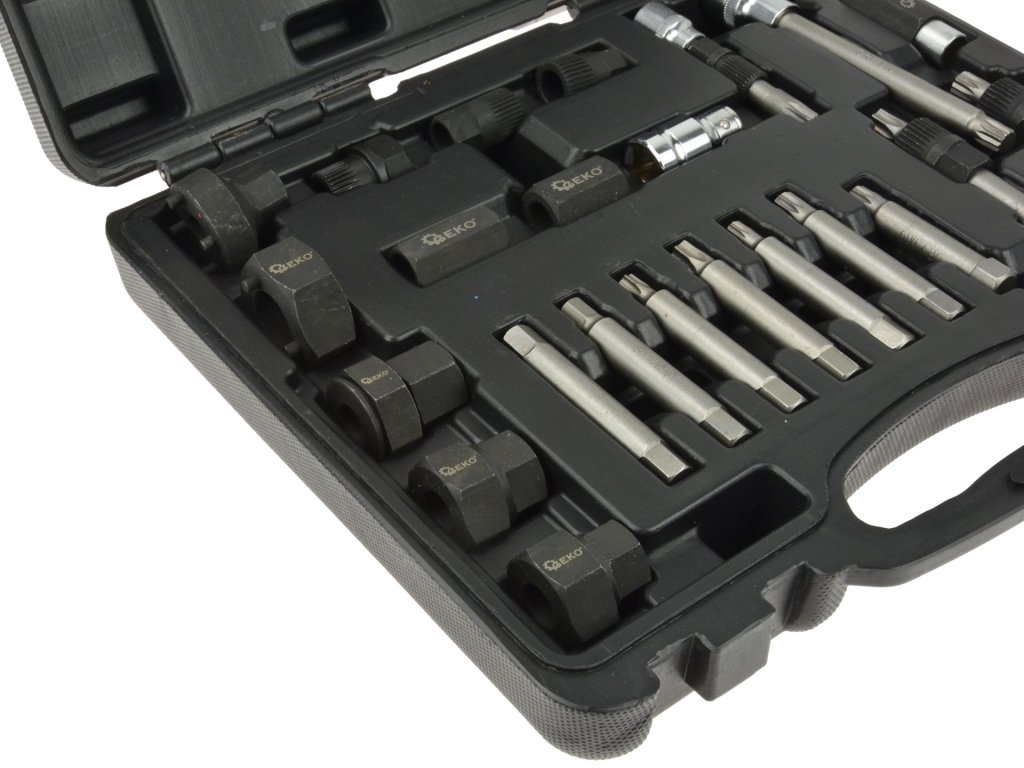 Комплект ключове за алтернатори 24 части G02781 е идеалният помощник за всички професионални автосервизи и работилници. Ключовете са произведени от висококачествена хром-ванадиева стомана CrV, което осигурява тяхната издръжливост и дълготрайност.