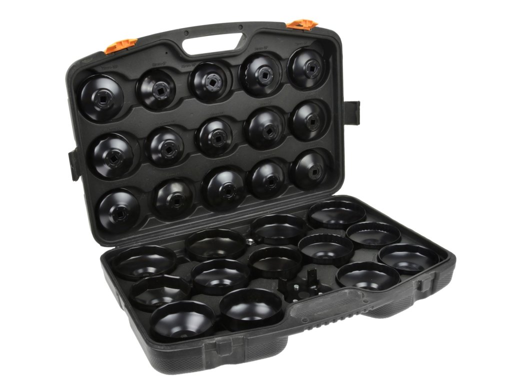 Комплект ключове за филтри 30 бр. G10401 е идеален за повечето леки автомобили, произведени за европейския, американския и азиатския пазар. Този продукт е проектиран да улесни демонтажа и монтажа на филтри на труднодостъпни места и е подходящ за използване с тресчотка 3/8" или 1/2". Целият комплект е удобно съхранен в пластмасов куфар.