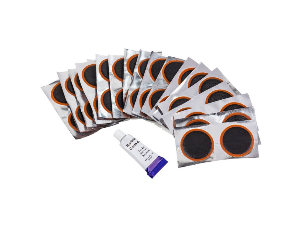 Комплект лепенки за гуми 36 бр. + лепило — комплект за ремонт на велосипеди