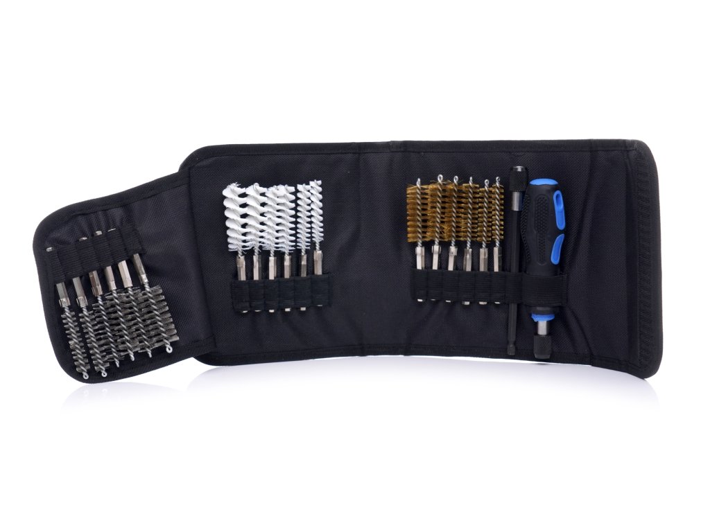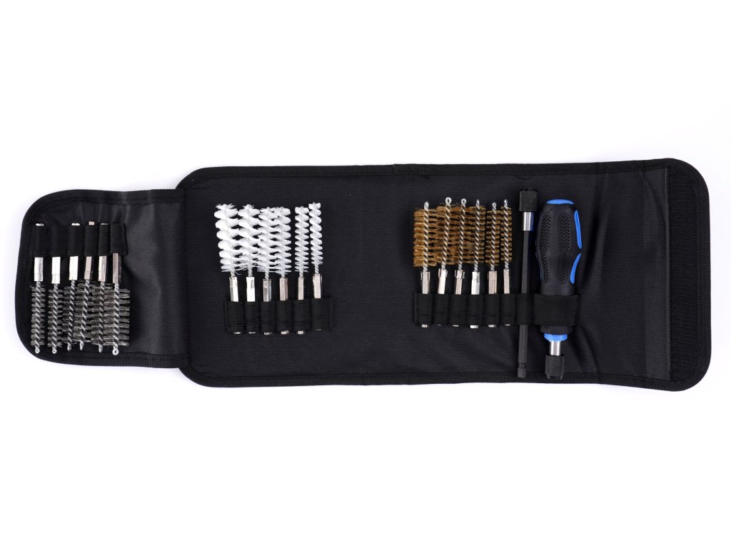 Тези четки са също подходящи за употреба с електрически и пневматични бормашини. Комплектът е изключително полезен за почистване и обезпечаване на цилиндри, втулки, тръби, резби на свещи и впръсквачи. Целият комплект удобно се съхранява в здрав и практичен калъф, който улеснява пренасянето и съхранението.