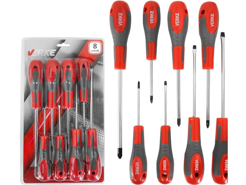 Комплект отвертки 8 бр Verke Лесна употреба V86432 изработени от хром-ванадиева стомана (CrV). Ергономична дръжка осигурява здрав захват на инструмента и гарантира ефективна и прецизна работа.