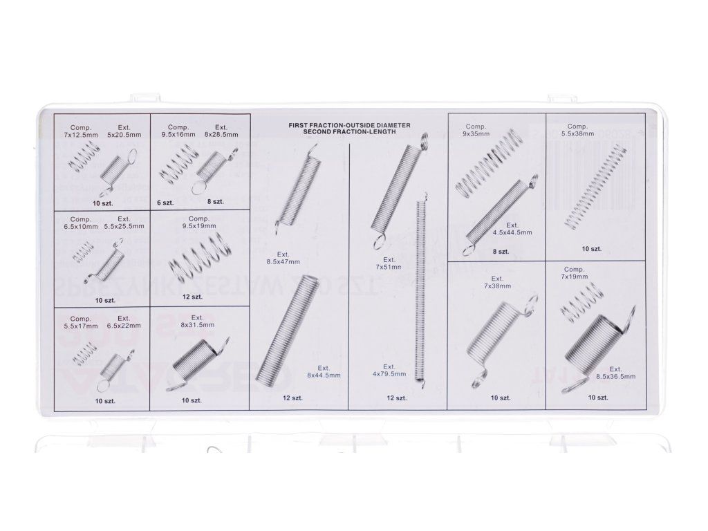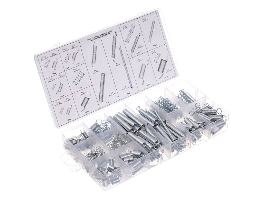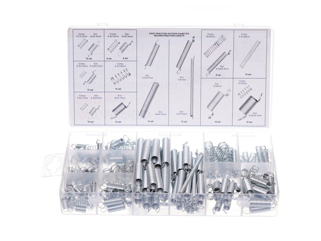 Комплект различни пружини, 200 бр. за свиване и разпъване е незаменим помощник в автосервизи, земеделие и промишленост. Благодарение на удобния органайзер имате лесен достъп до пружините в различни размери, което значително улеснява работата.