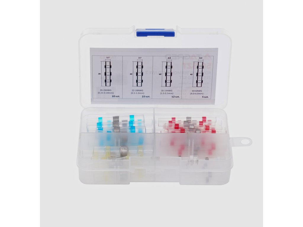 Херметични свивни съединения с калай TAGRED се отличават с отлична устойчивост на опън и механични повреди. Изработени са от двуслойна полиетиленова тръбичка, която отвън осигурява защита, а калиевият слой отвътре гарантира отлична водоустойчивост. Във всяко бързо свивно съединение има специално лепило, което подсилва връзката и я предпазва от влага. След свързване на проводниците не е необходима допълнителна изолация. Тези бързи съединения са идеални за използване в автомобили, лодки, мотоциклети и домакинството.