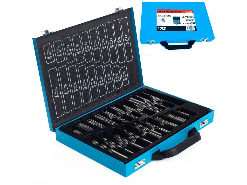 Комплект свредла е идеалното решение за любители и необходим инструмент във всяко автосервизно или работилно помещение. Този комплект е внимателно съставен, за да отговори на очакванията дори на най-взискателните потребители. Свредлата са изработени от висококачествена бързорежеща стомана 'DIN 338' легирана с кобалт, което значително подобрява тяхната издръжливост и удобство при работа. Целият комплект е елегантно опакован в здрав метален куфар с практичен органайзер, който улеснява съхранението и пренасянето.