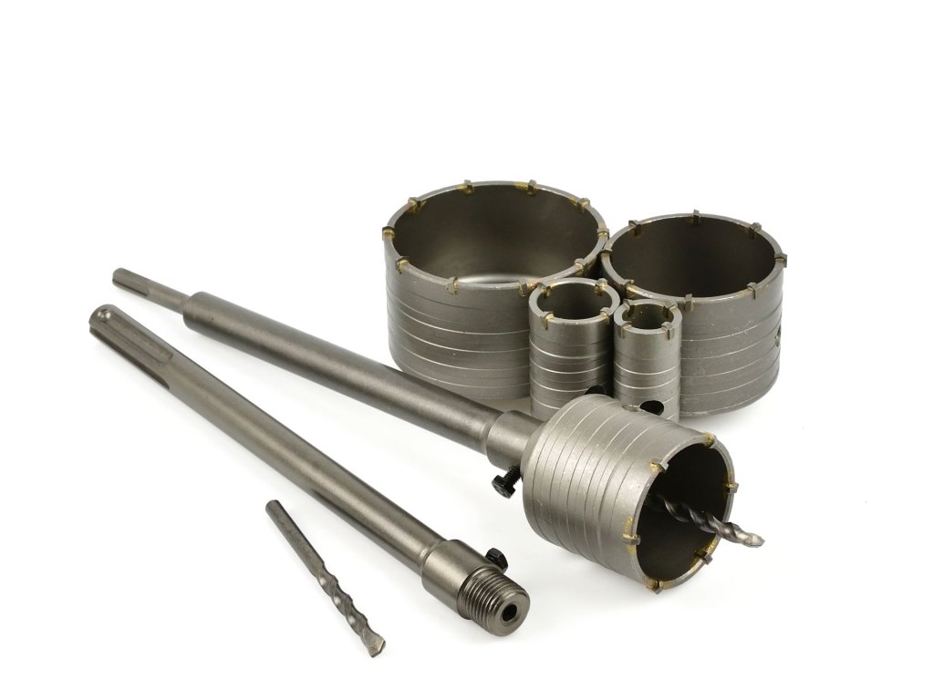 Комплектът включва адаптери 300 мм с водещо свредло, подходящи за използване с бормашини с патронник SDS-Plus или SDS-Max. Тези свредла с видии са идеални за пробиване на отвори за ел. инсталации като кутии и контакти в различни строителни материали – бетон, гипсокартон, шпакловка, тухли, плочки и други.