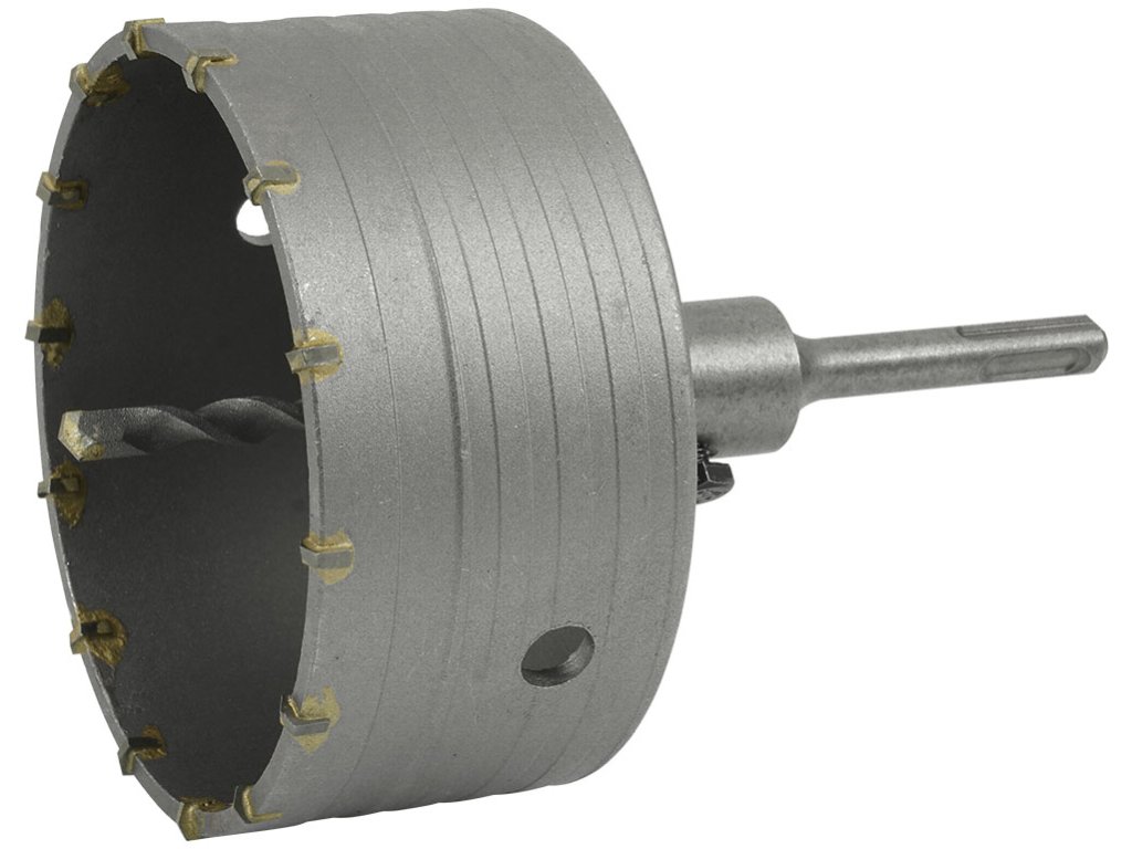 Комплект свредла за бетон 120 мм SDS+ VERKE V05093. Този инструмент е оборудван с 14 режещи зъба от твърдосплавна стомана. Свредлото с дължина 55 мм и диаметър 120 мм е идеално за пробиване на бетон, тухли, блокове и зидарски материали. Холдер с SDS+ закрепен към свредлото със винт. Използването на водещо свредло и допълнителни отвори за отвеждане на материал подобрява качеството и удобството при работа.