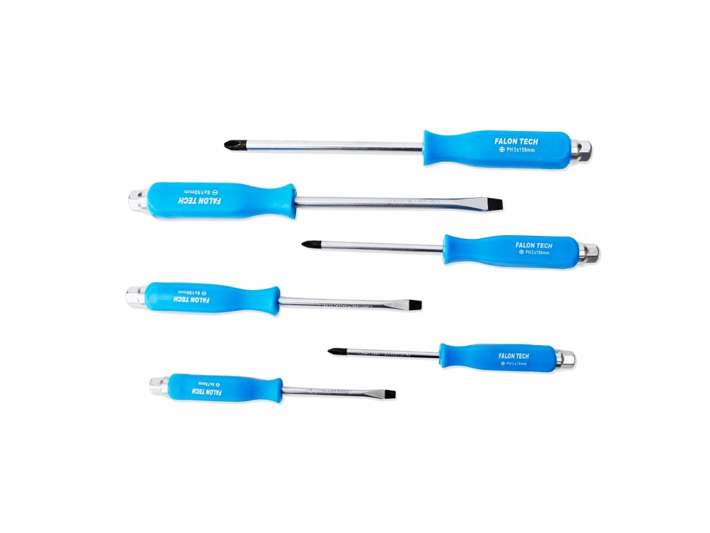 Този професионален комплект ударни отвертки съдържа 6 броя инструменти, проектирани за максимална здравина при интензивна употреба. Всяка отвертка е снабдена с усилена метална глава, която позволява удари с чук за увеличаване на силата при затягане или развиване. Шестоъгълната форма на главата осигурява по-добър захват при използване на ключ.