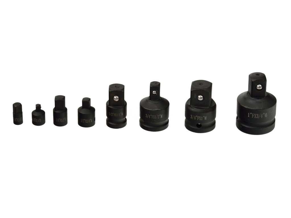 Комплект ударни преходници 8 бр./черен G10090 е идеален за работа при големи натоварвания. Тези преходници са подходящи както за домашна работилница, така и за професионална употреба. Всеки преходник е оборудван с отвор за щифт и обезопасителен пръстен, което гарантира здраво закрепване.