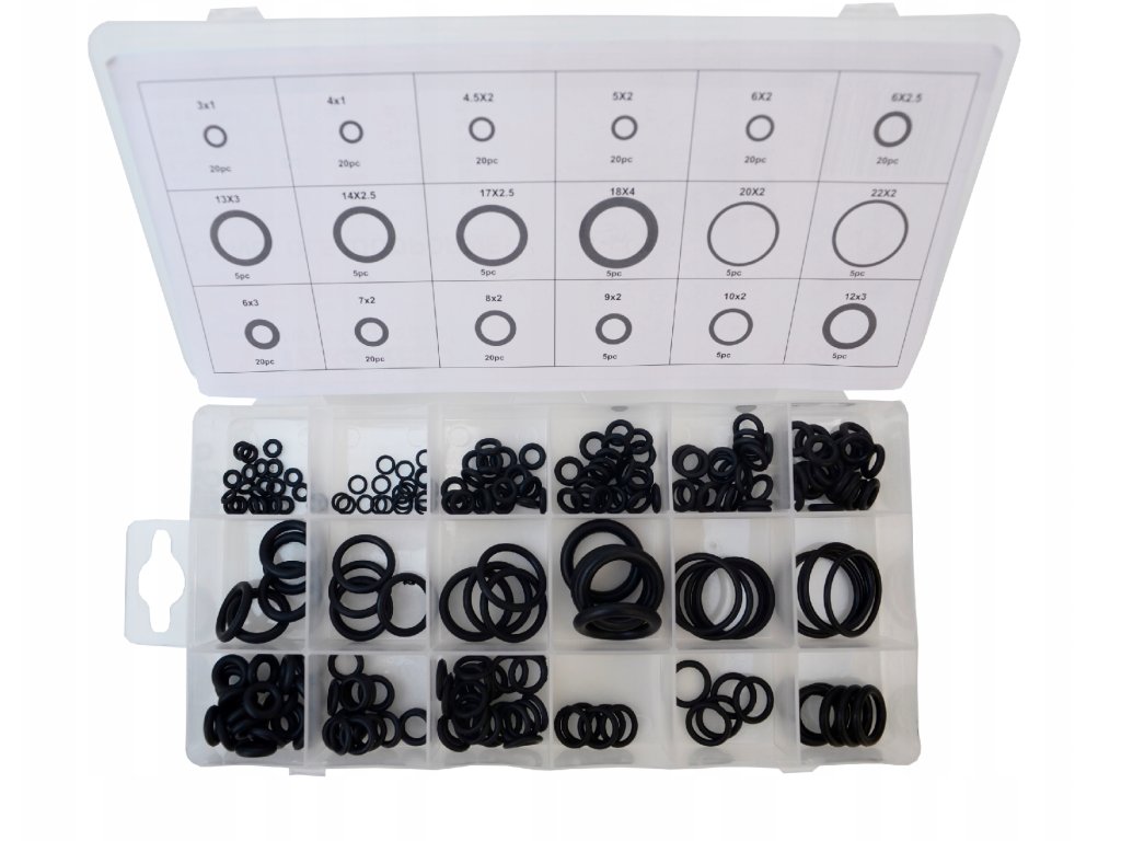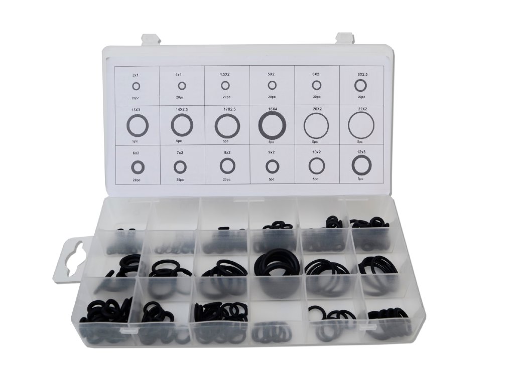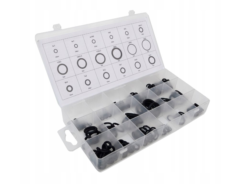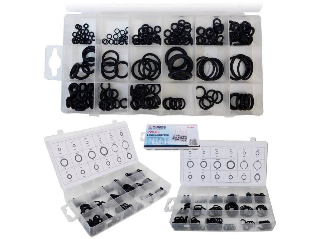 Този Комплект уплътнения O-пръстени – 225 броя съдържа 225 бр. висококачествени уплътнения, които са устойчиви на масла, петролни продукти, озон, киселини, основи и други химикали. Уплътненията са подходящи за широк спектър от приложения и са опаковани в практична пластмасова кутия, което улеснява тяхната организация и употреба.