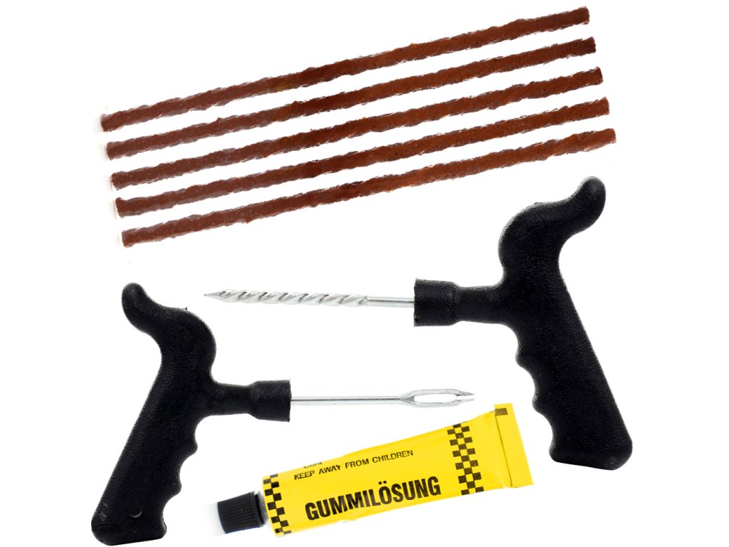 Комплект за ремонт на гуми, колела и гумени части е идеалното решение за бързи и ефективни ремонти на повреди по гумите, причинени от пирони. Този полезен комплект за всеки сервиз за гуми осигурява евтин и бърз ремонт, който ви позволява да използвате гумата отново само за няколко минути.