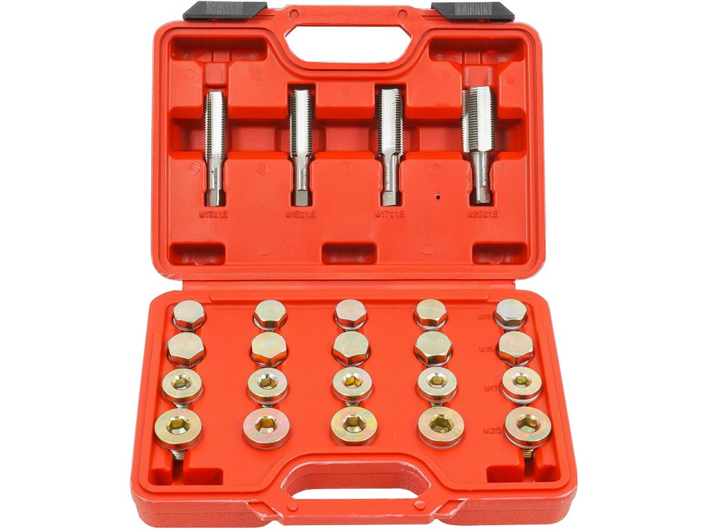 Комплект за лесен ремонт на резби на източващи болтове на картера за масло, скоростна кутия и други.