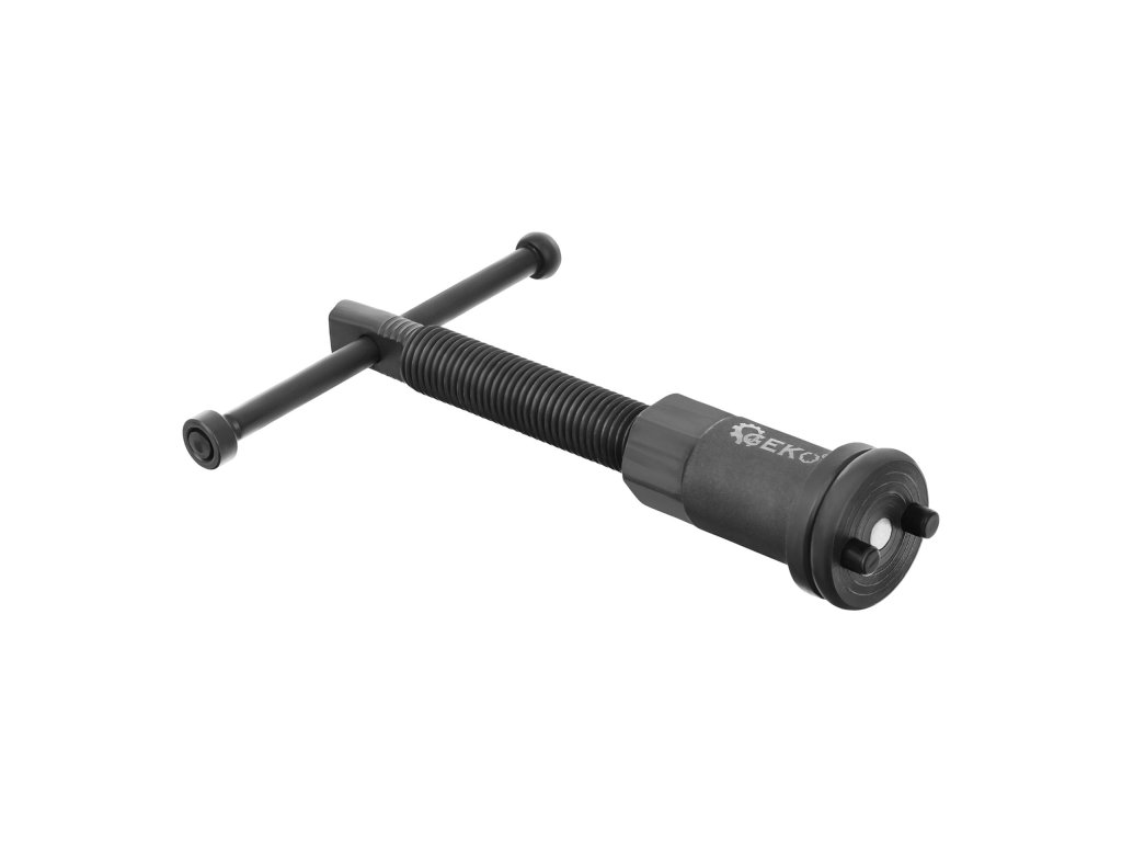 Комплектът съдържа 12 адаптера и е незаменим инструмент за стискане и изтласкване на спирачни бутала при ремонт на автомобили с дискови спирачки. Адаптерите са създадени да пасват на различни марки и модели автомобили като General Motors, Cadillac Seville, Eldorado, Citroen XM, Xantia, Alfa Romeo, Audi, BMW, Ford Fiesta, Honda Concerto, Mercedes-Benz, Mitsubishi Colt, Nissan Micra, Range Rover, Toyota Camry, VW Passat, Golf GTI, Volvo, Fiat, Ford Telstar, Laser, Saturn, Grand Prix, Lumina, Honda Prelude, CRX, Mazda, Saab, Subaru, Nissan Primera, Audi 80, 90, V8, 100, Coupe, Ford Sierra ABS, Granada, Scorpio, Blue Bird Primera, Rover, Peugeot 405, Toyota Celica, Corolla GT, MR2, VW Golf, Passat, Corrado, Scirocco, Jetta и други. В комплекта е включен и въртящ се гребен с магнитен връх, който улеснява работата със спирачните бутала. Този професионален комплект е подходящ както за сервизни техници, така и за любители, занимаващи се с поддръжка и ремонт на автомобили.