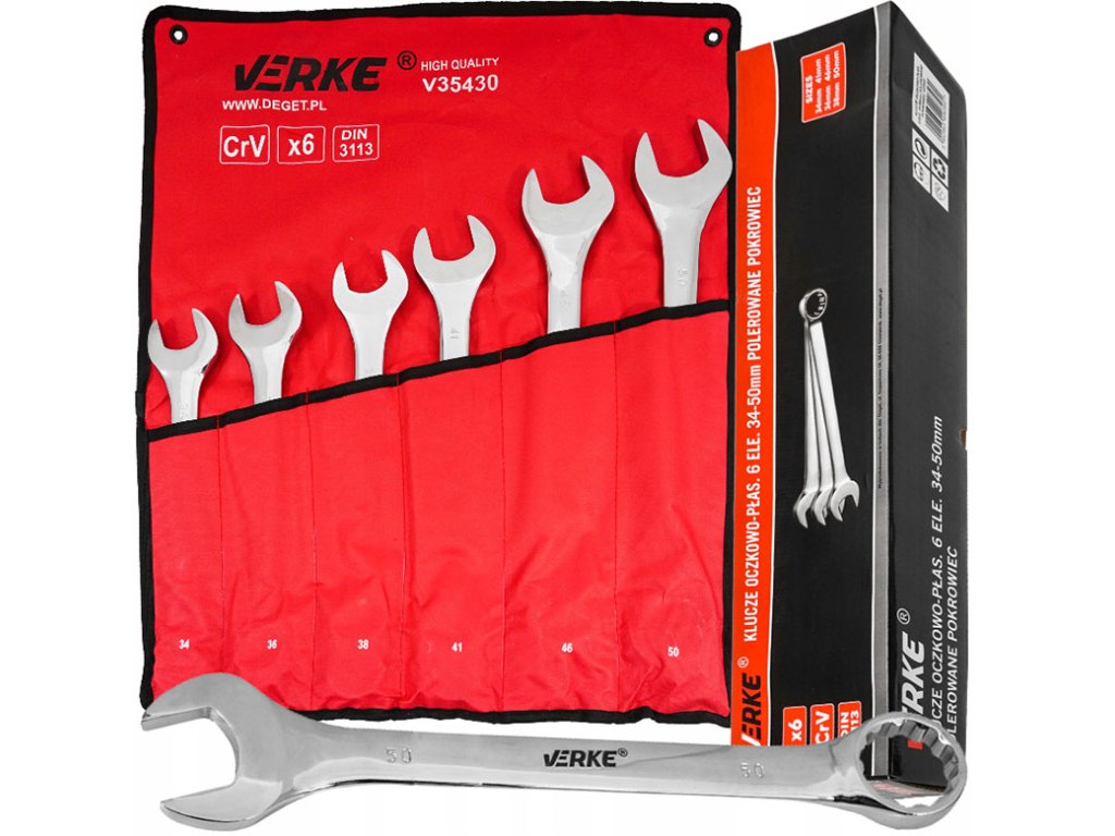 Комплект звездогаечни ключове 6 бр. 34-50мм полирани с калъф VERKE V35430