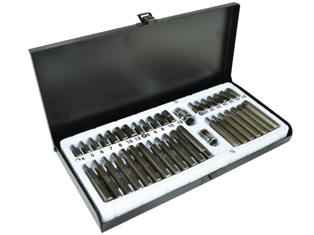 Комплект битове от хром-ванадиева стомана (CrV) е идеалният избор за професионални сервизи и автосервизи. Проектиран е за развиване на специални винтове тип torx, spline и hex, което го прави универсален и практичен инструмент.
